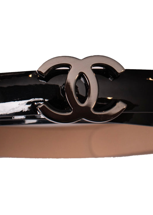 Chanel Black Patent Leather CC Belt S/M