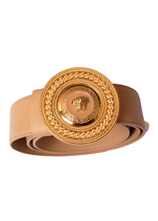 Versace Tan Leather and Gold Medusa Belt L/XL