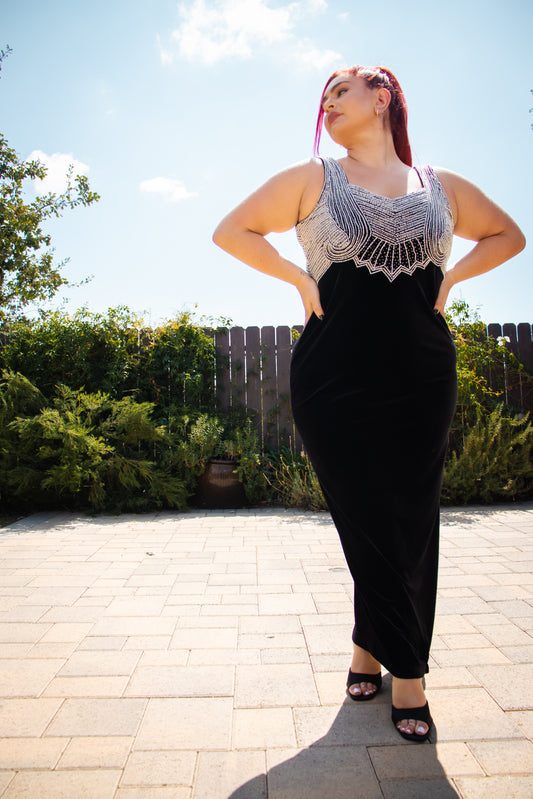 80’s Black Lace and Fuchsia Silk Custom Skirt Set XS