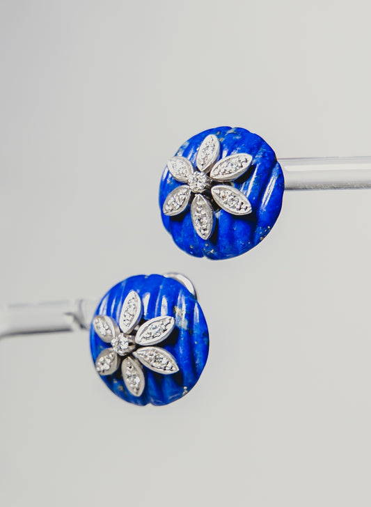 Blue Lapis and Diamond Earrings