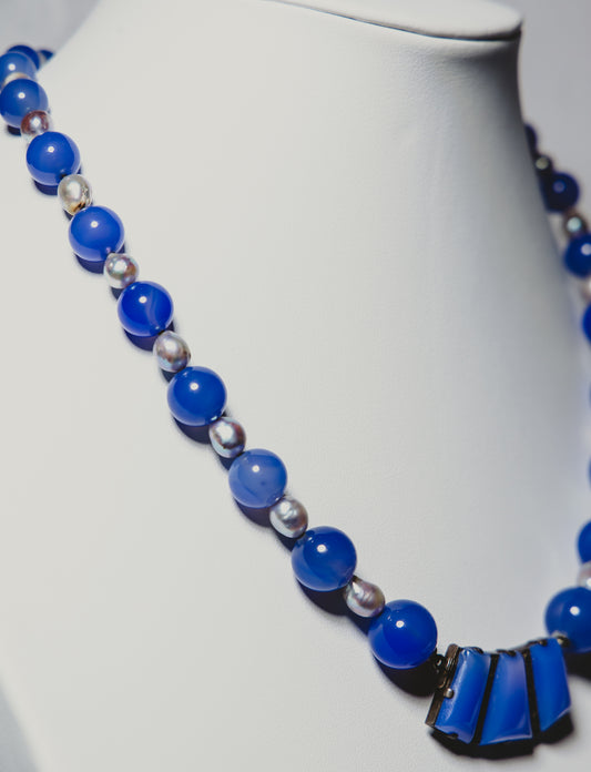 Lavender Agate & Blue Pearl Necklace
