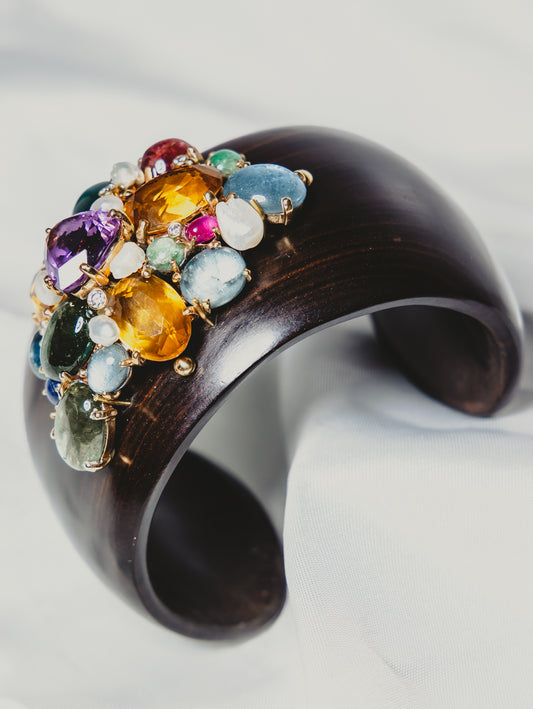 Gemstone & Wood Cuff Bracelet
