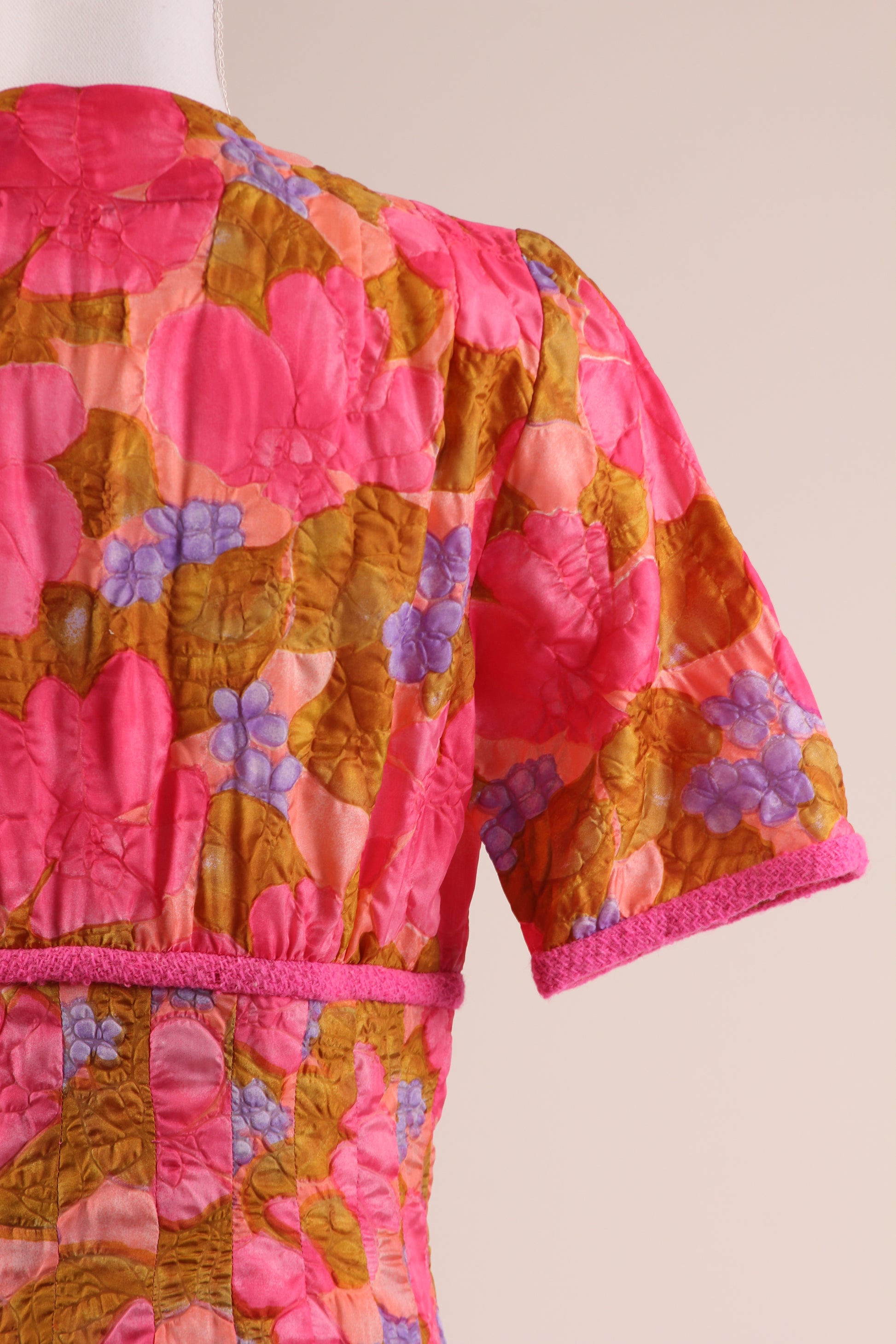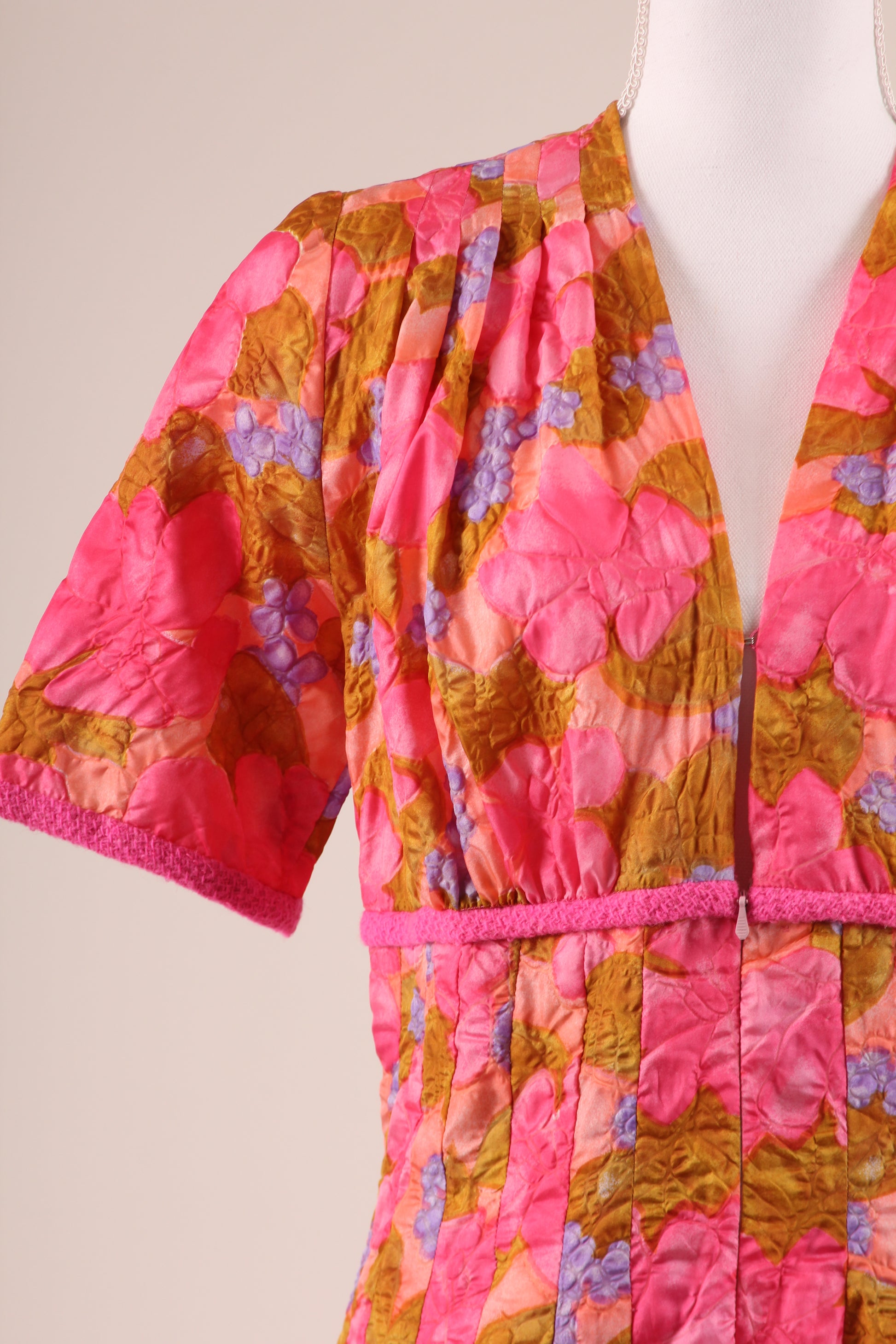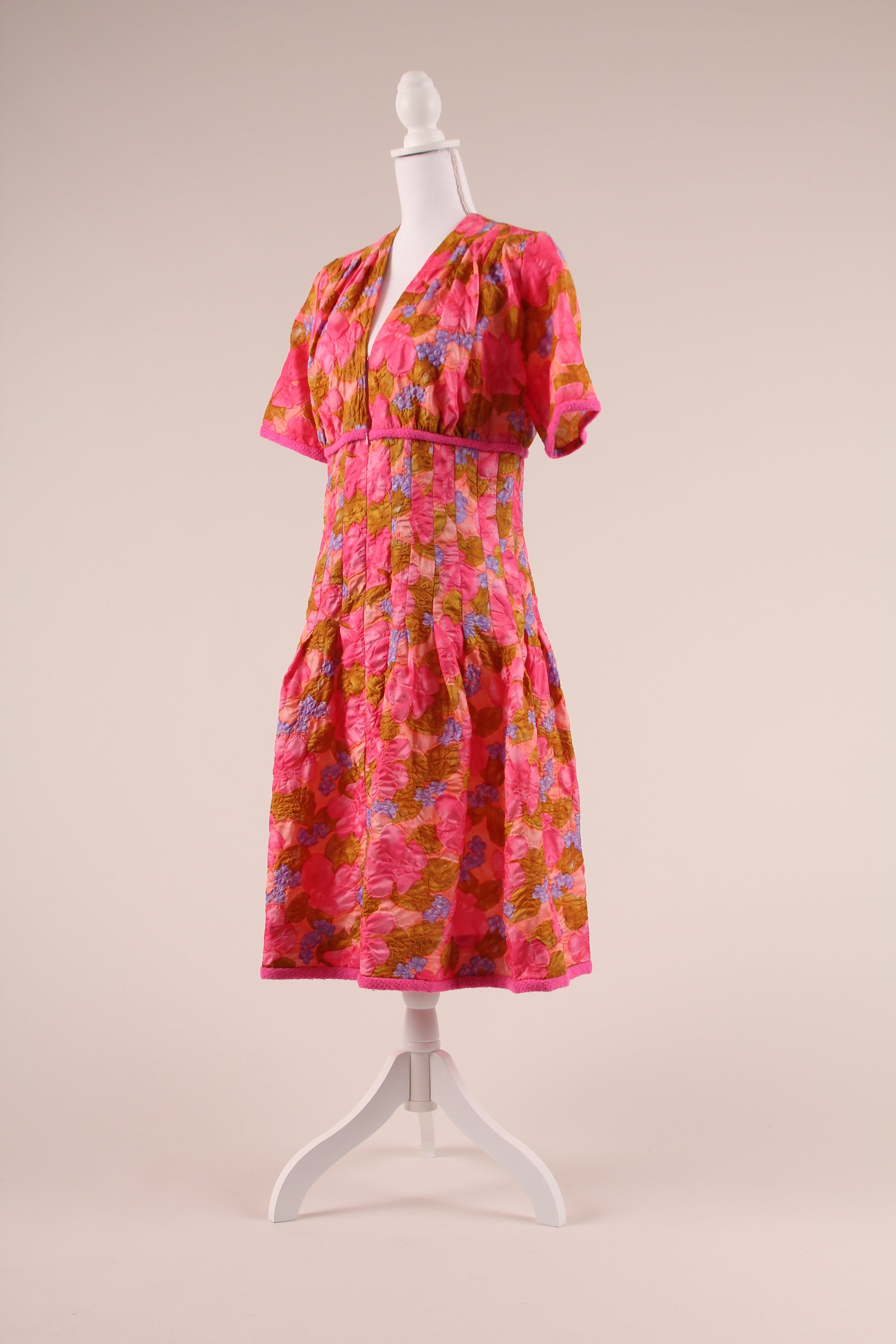 Made from textured, fast drying parachute fabric with pink woven piping at waist, sleeves and hem. Features a pleated, generous bosom and can be worn plunging or fastened with the hidden closure for a more modest look.