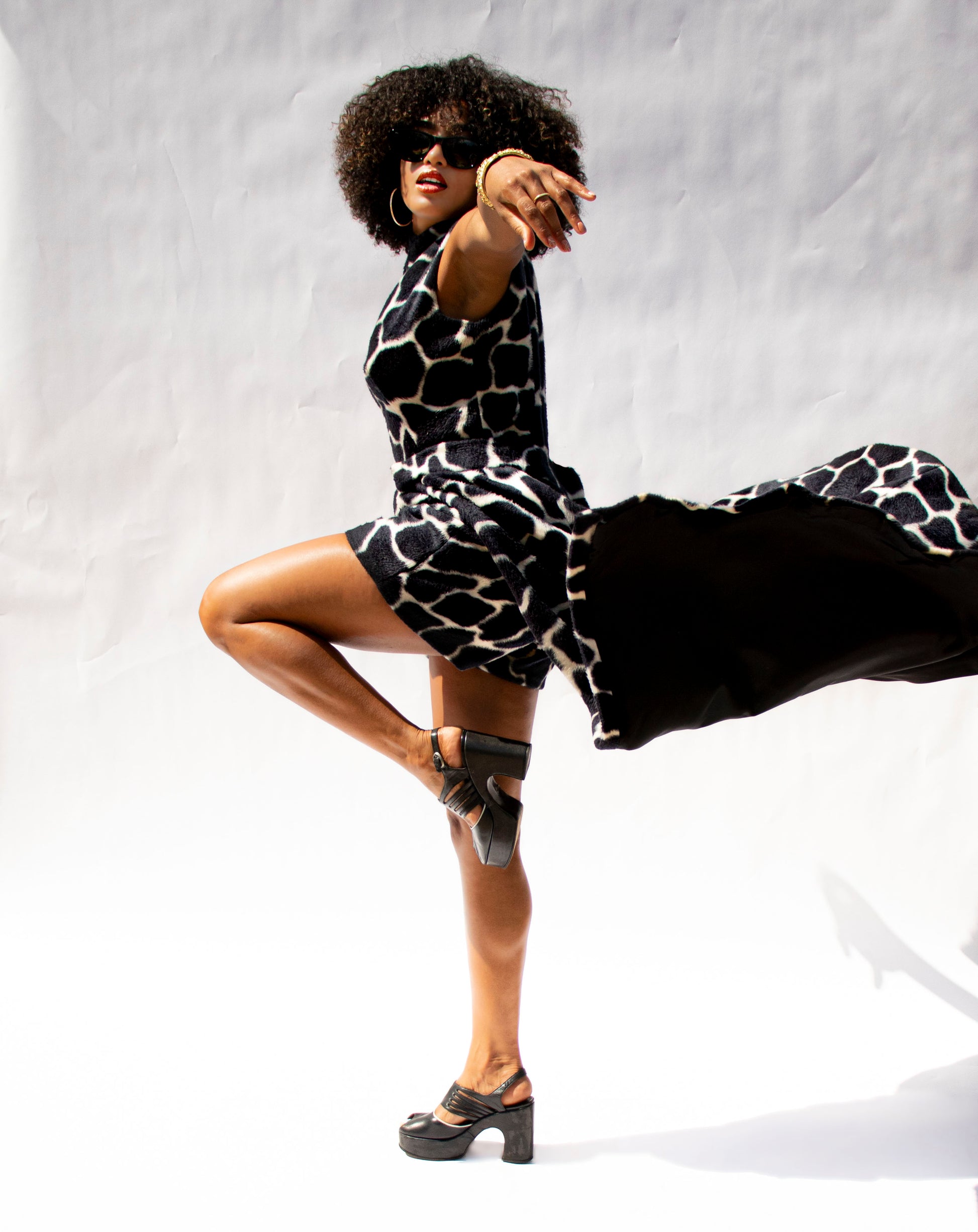 1960's Custom Black and White Giraffe Romper and Maxi Skirt Set.