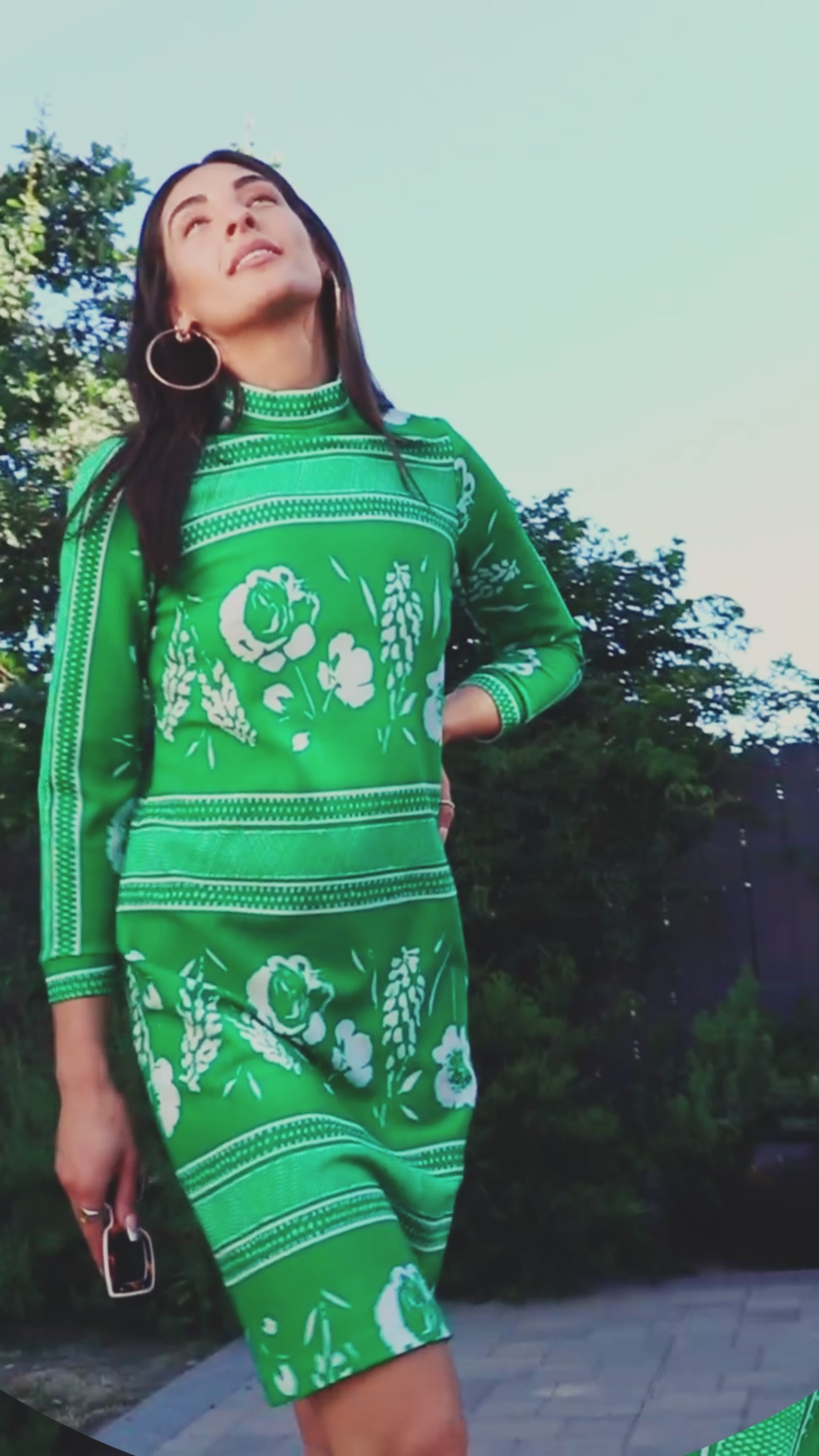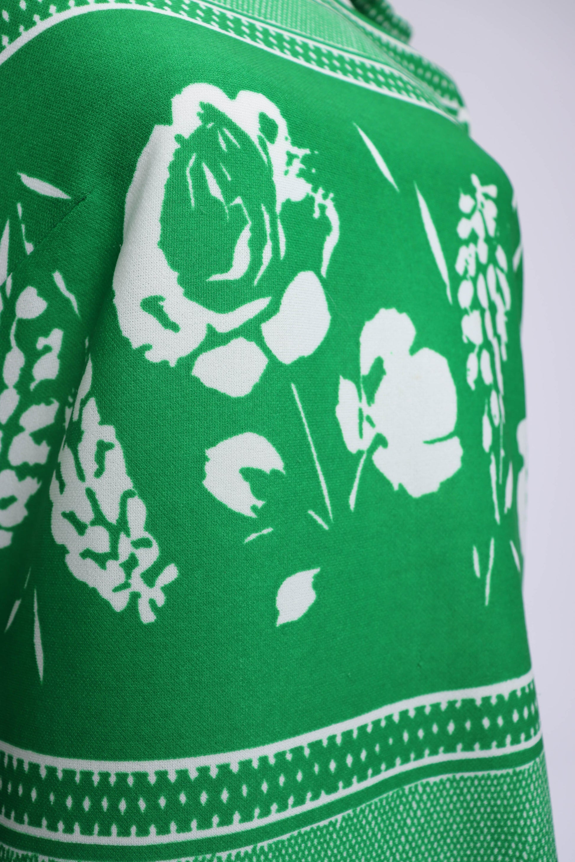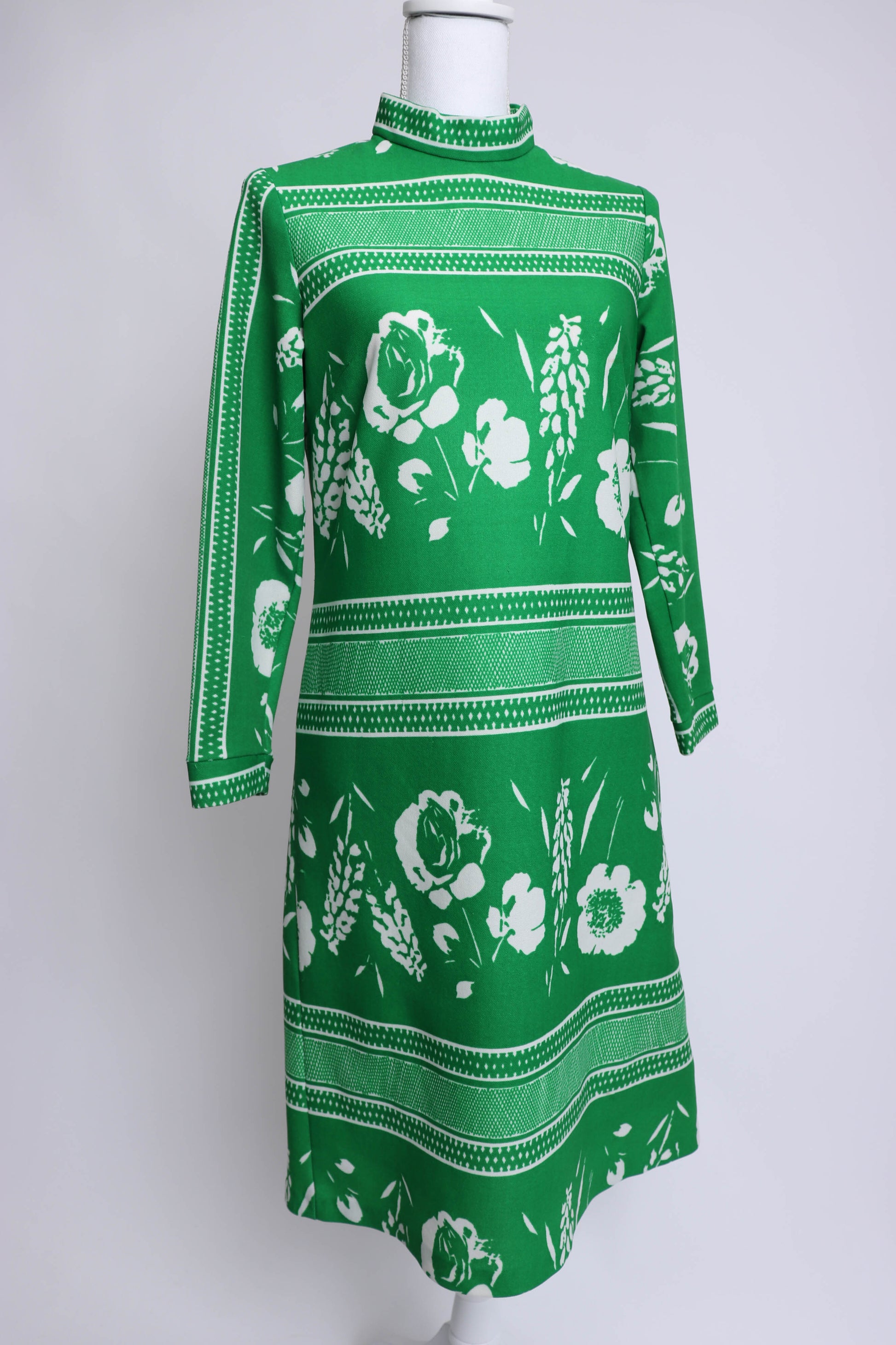 1960's Green and White Floral Long Sleeve Mock-Collar Shift Dress by Flutterbye.