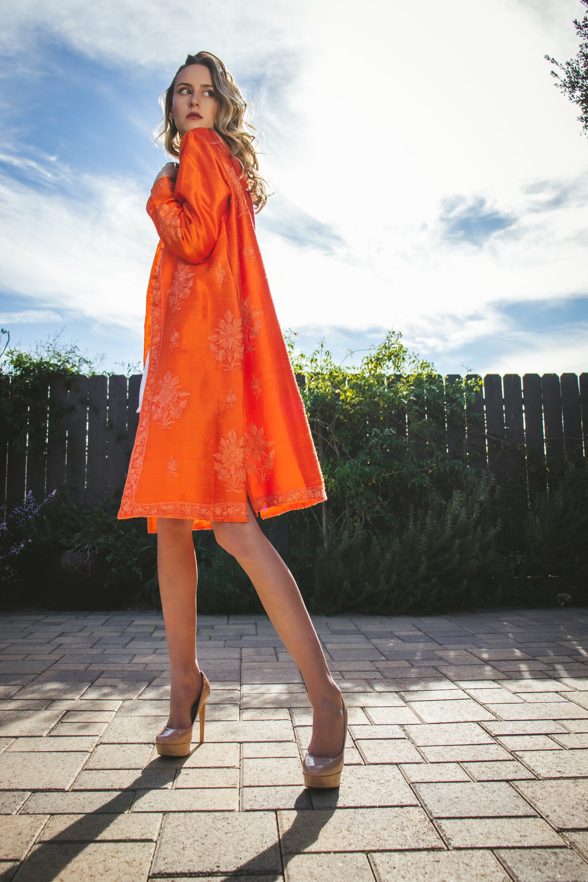 Our model was feeling it with the silk slip but it can be worn buttoned up with a low waist vintage jean or pair with a mini skirt and a bralette, you can't go wrong. The way it moves when you walk is everything. She's got a lot of swing and sass and is a great travel piece!