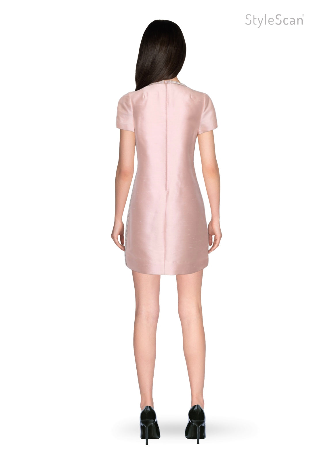 1960's Custom Pink Silk Beaded Shift Mini Dress.