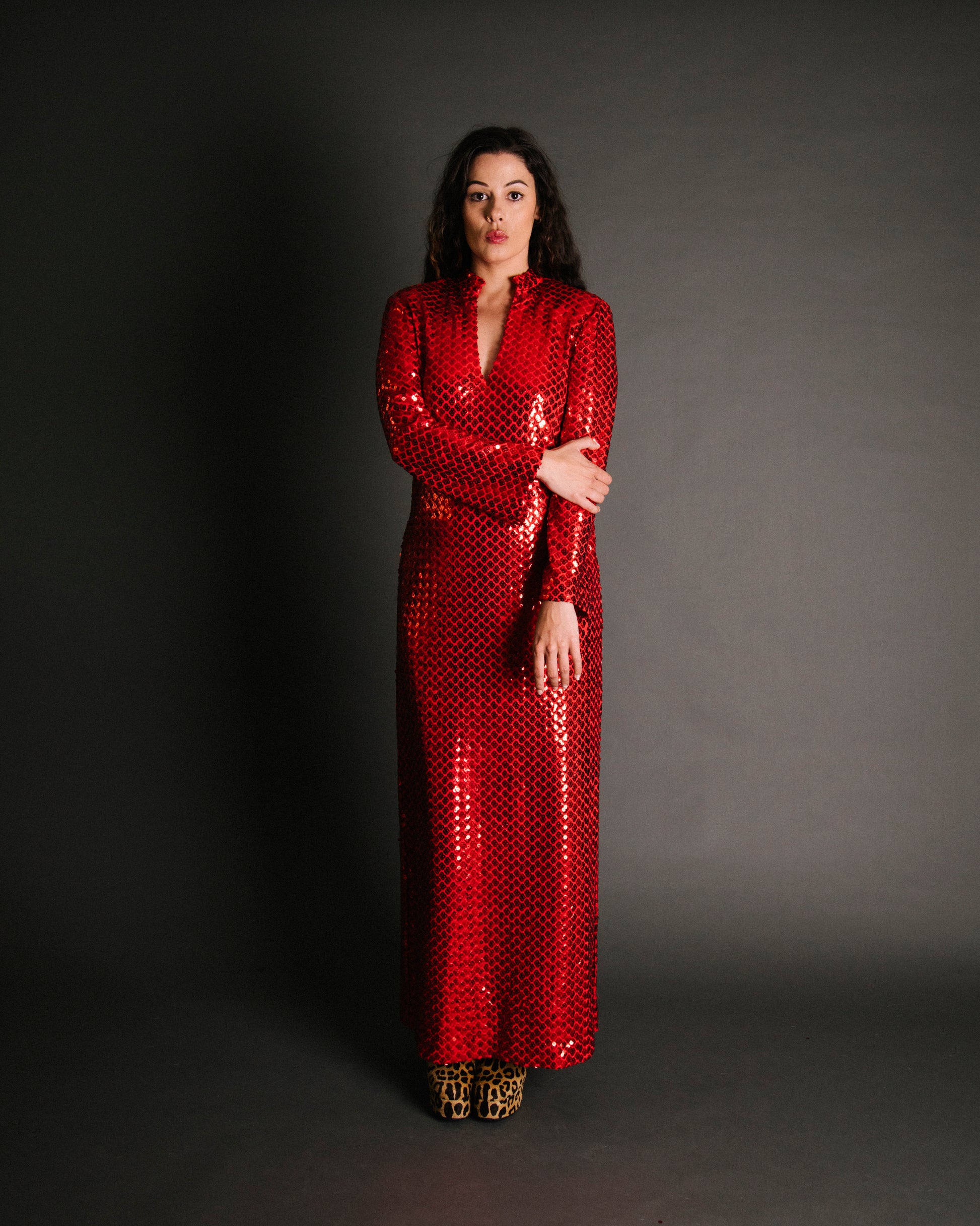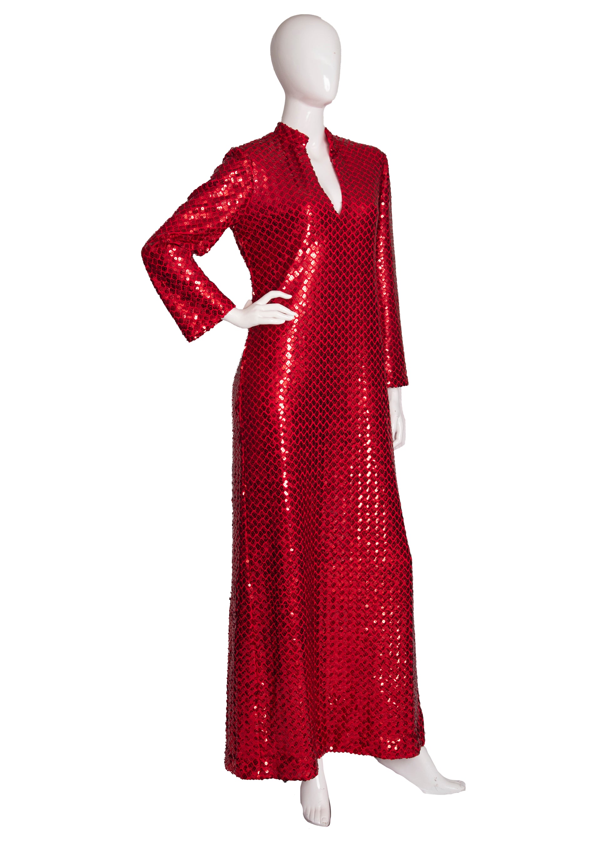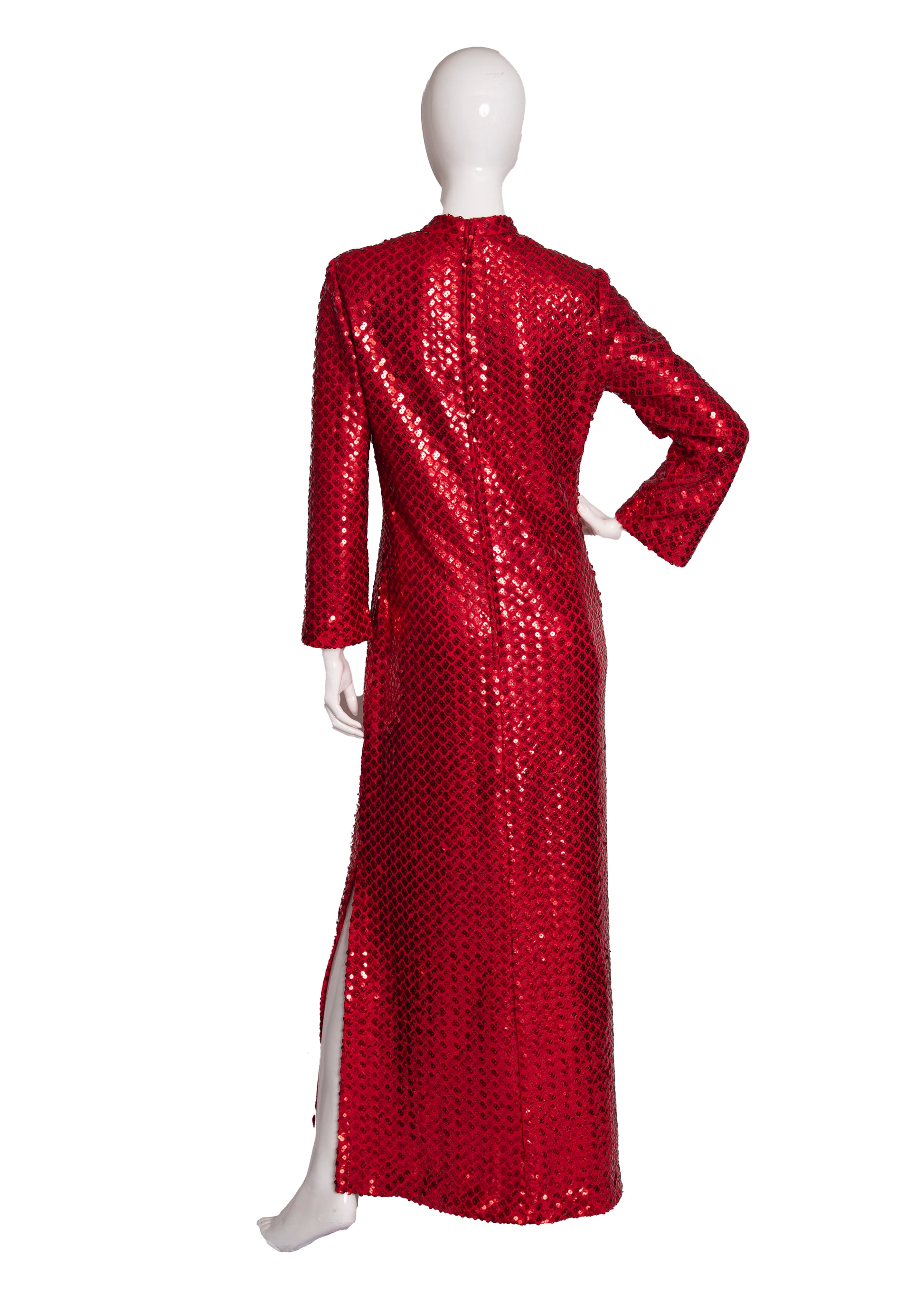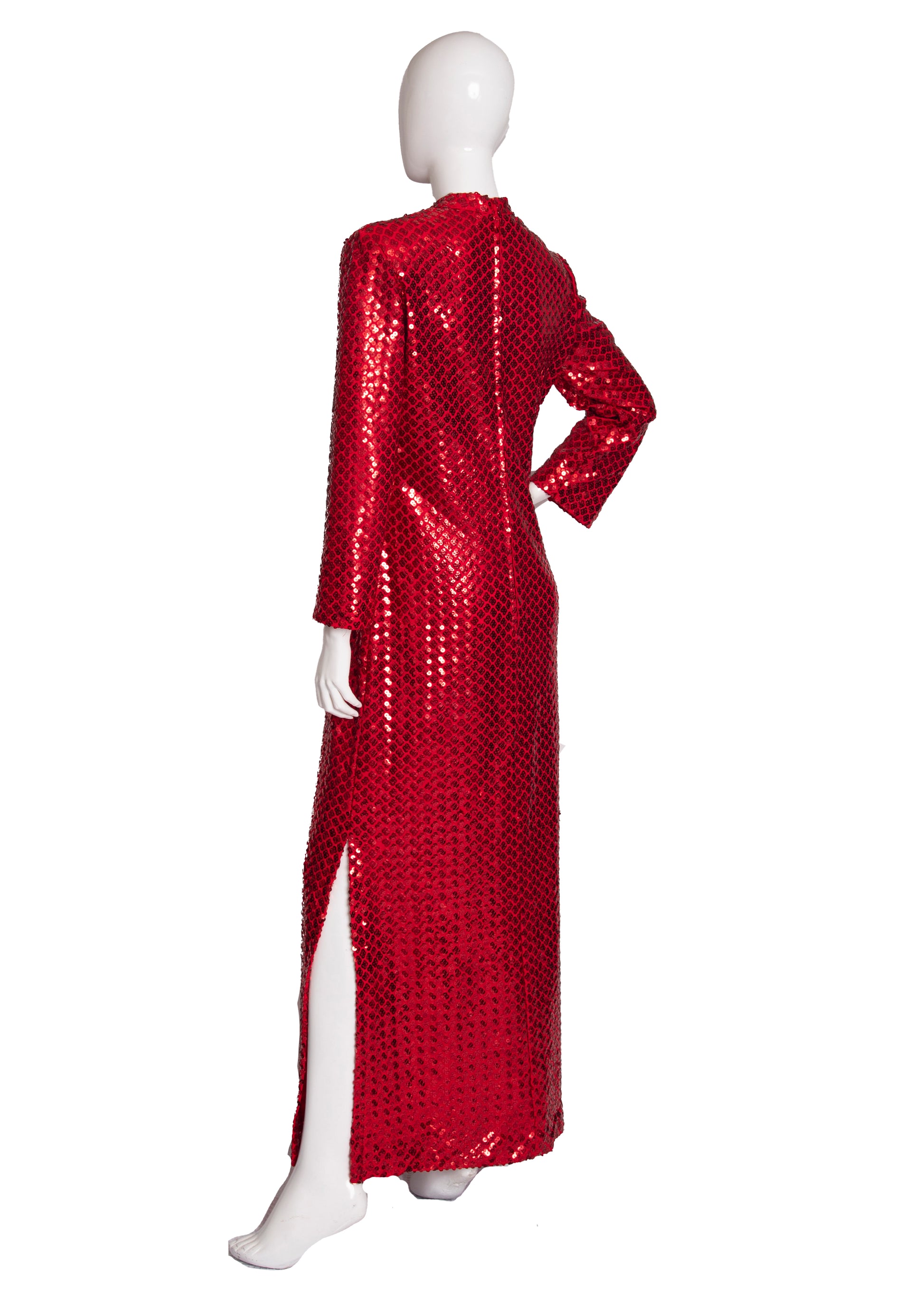 This dress is a true favorite—the sparkle, vibrant hue, flattering fit, and alluring side slit come together to create an ideal party look. Featuring a zipper closure at the back and crafted from a beautiful jersey knit, it offers both style and comfort.