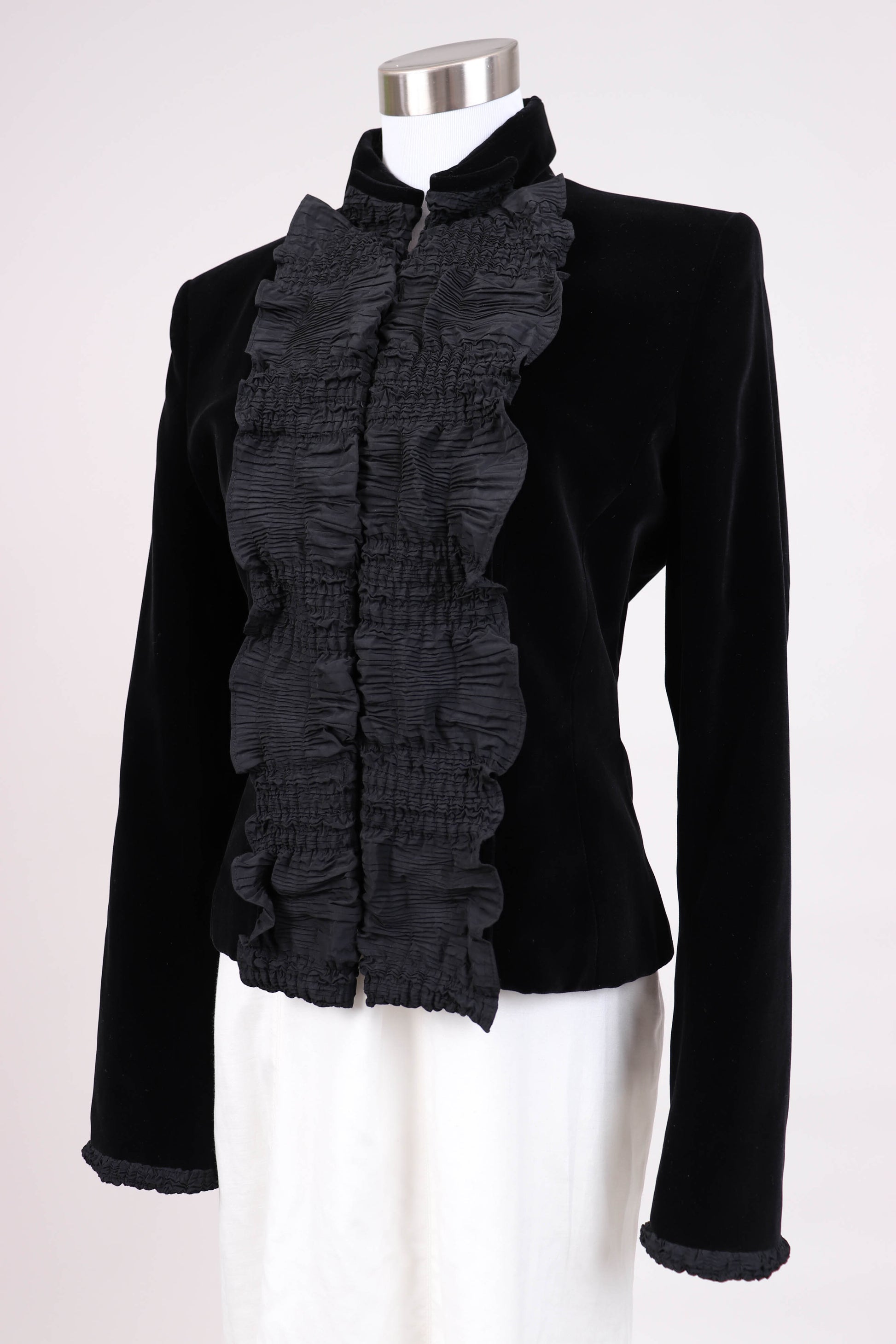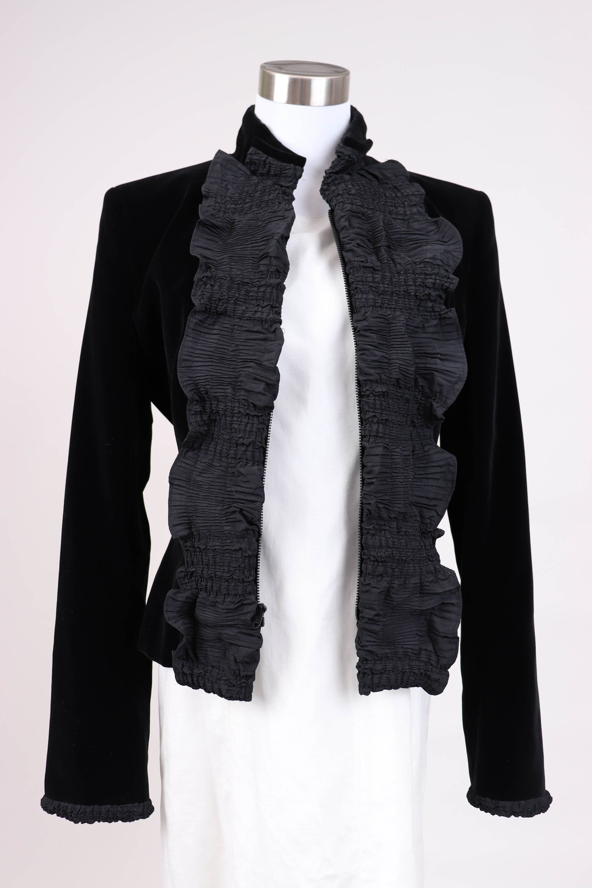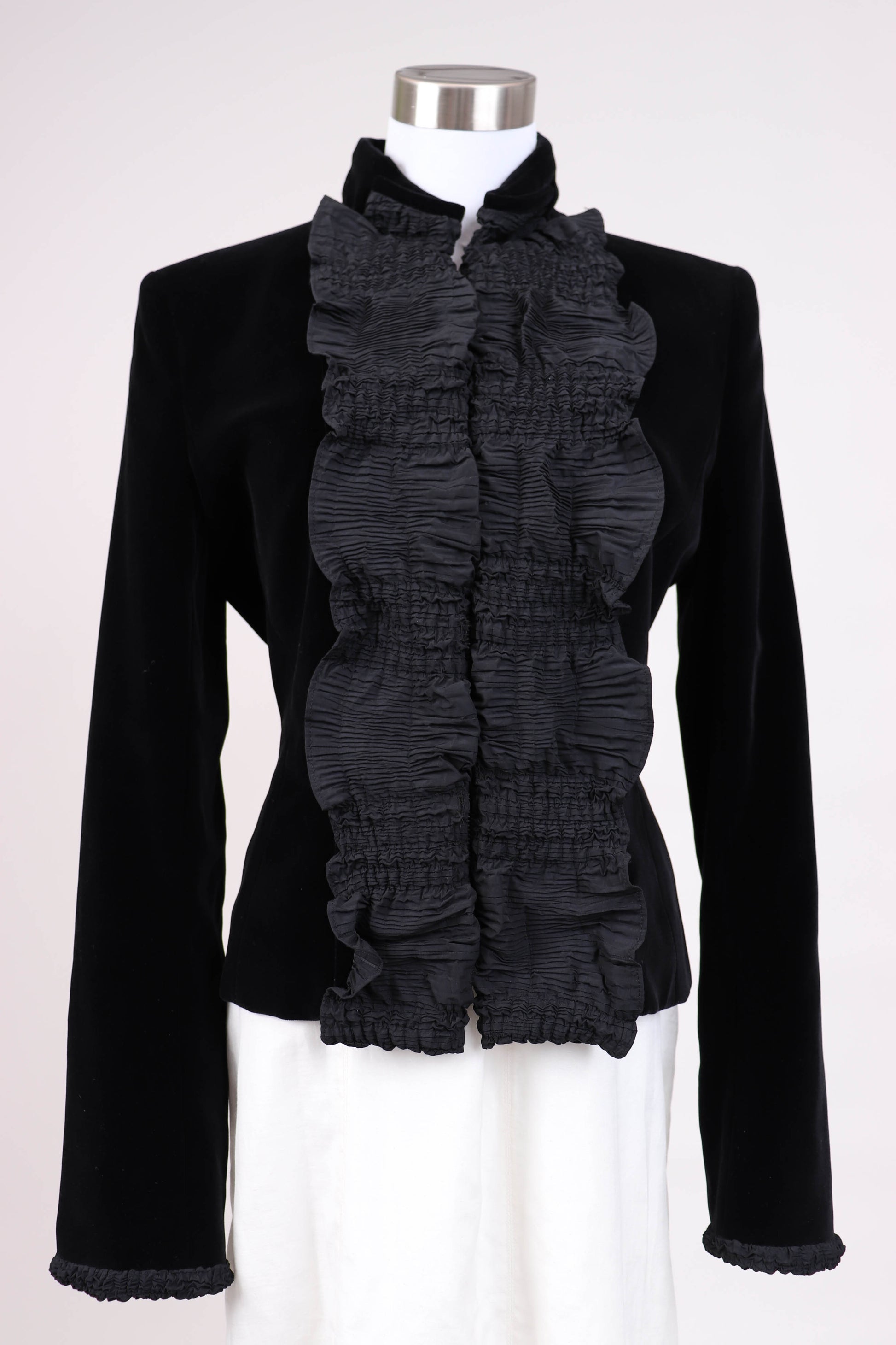 1990's Tom Ford for Yves Saint Laurent Rive Gauche Black Velvet Jacket with Crepe Detail.