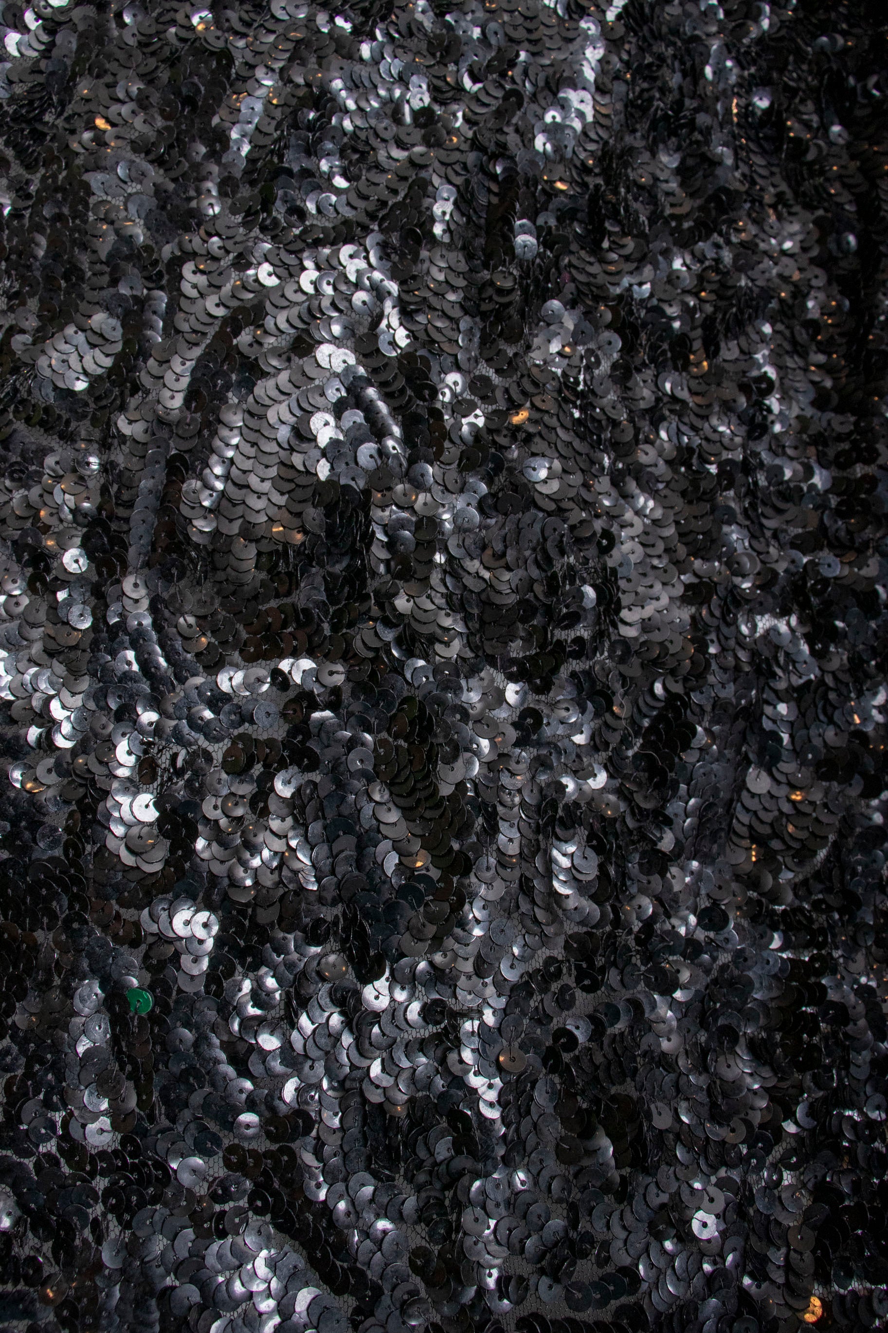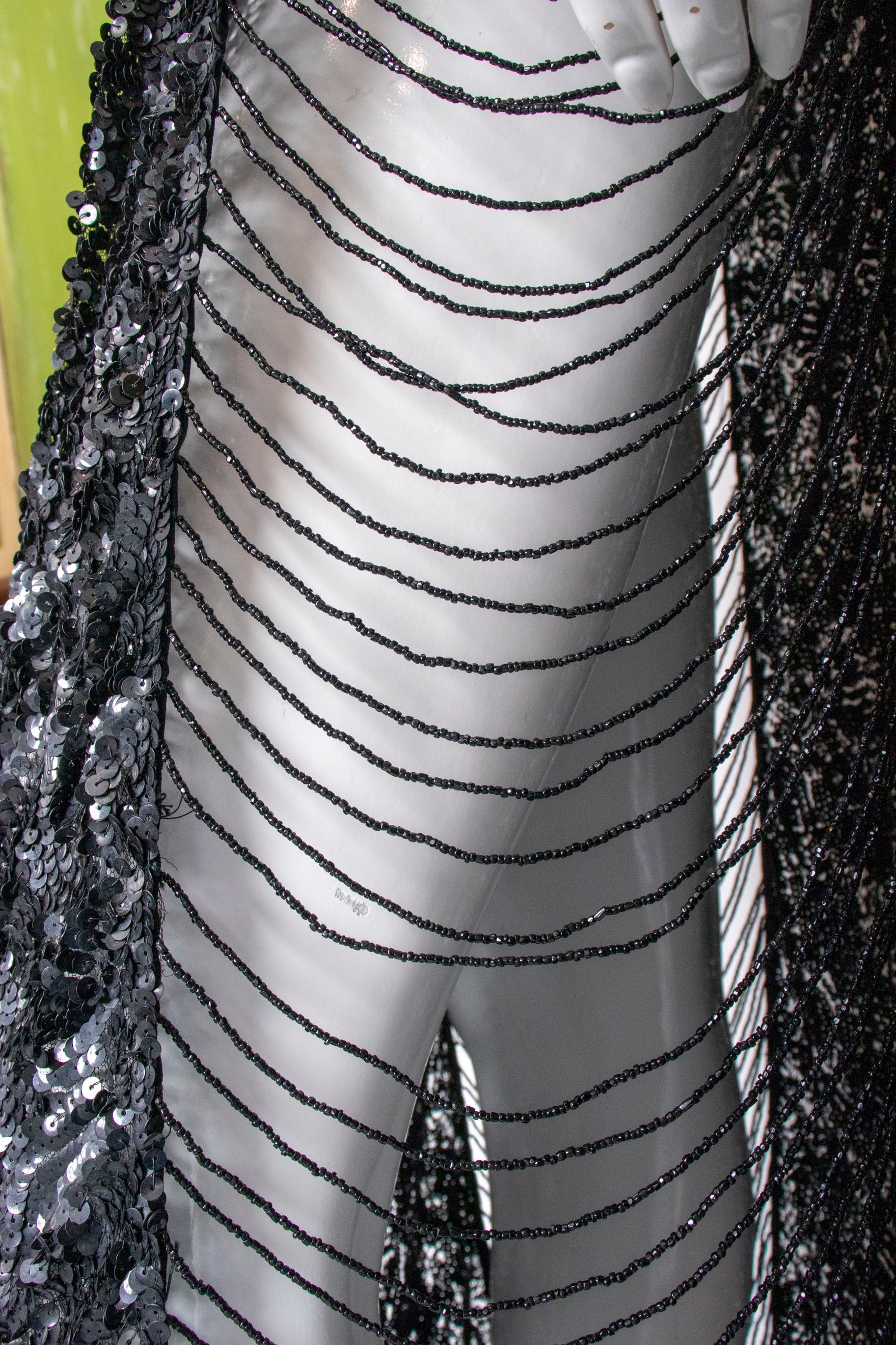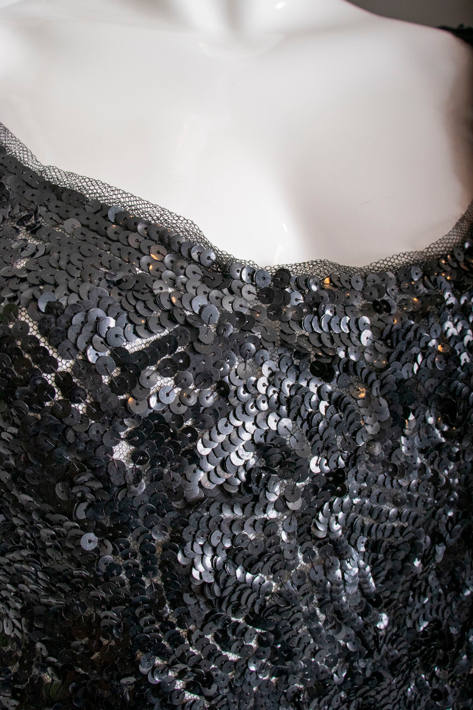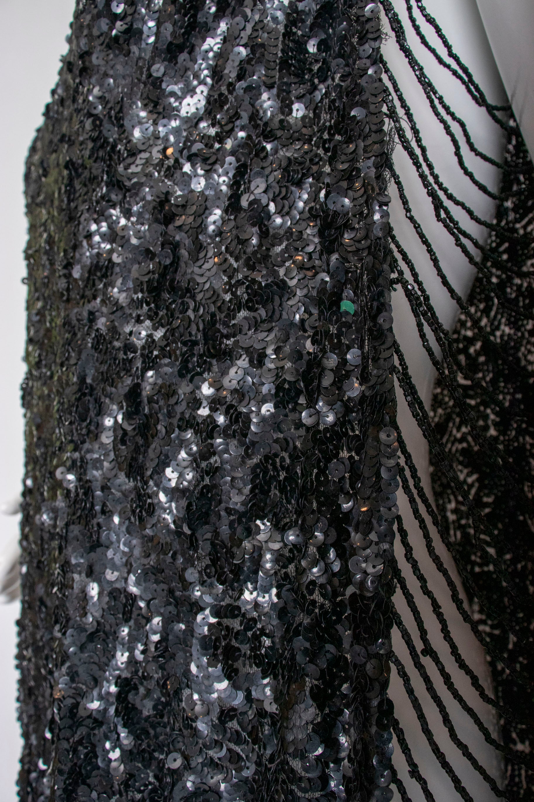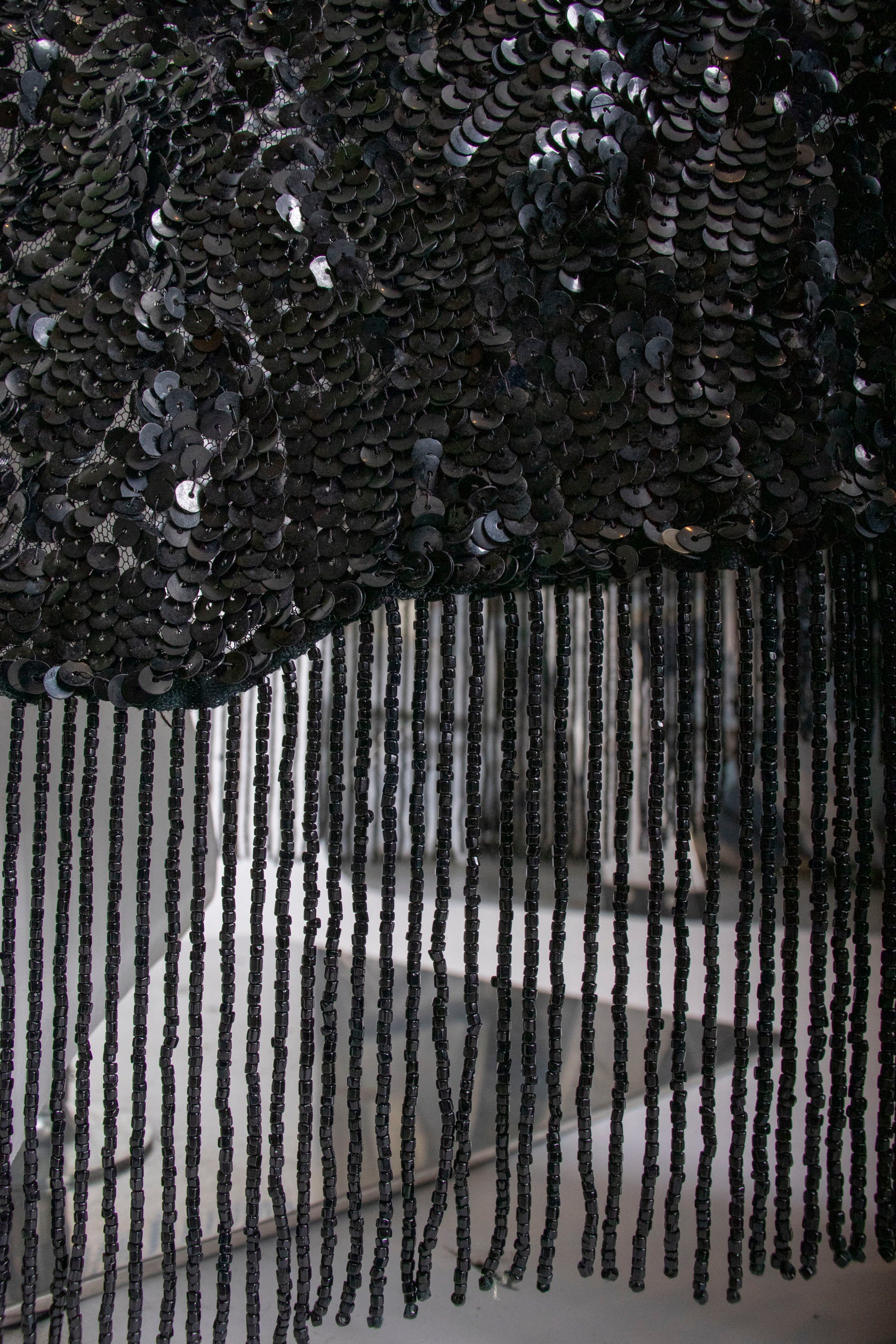 - Fabric: black sequin on tulle, black bead details