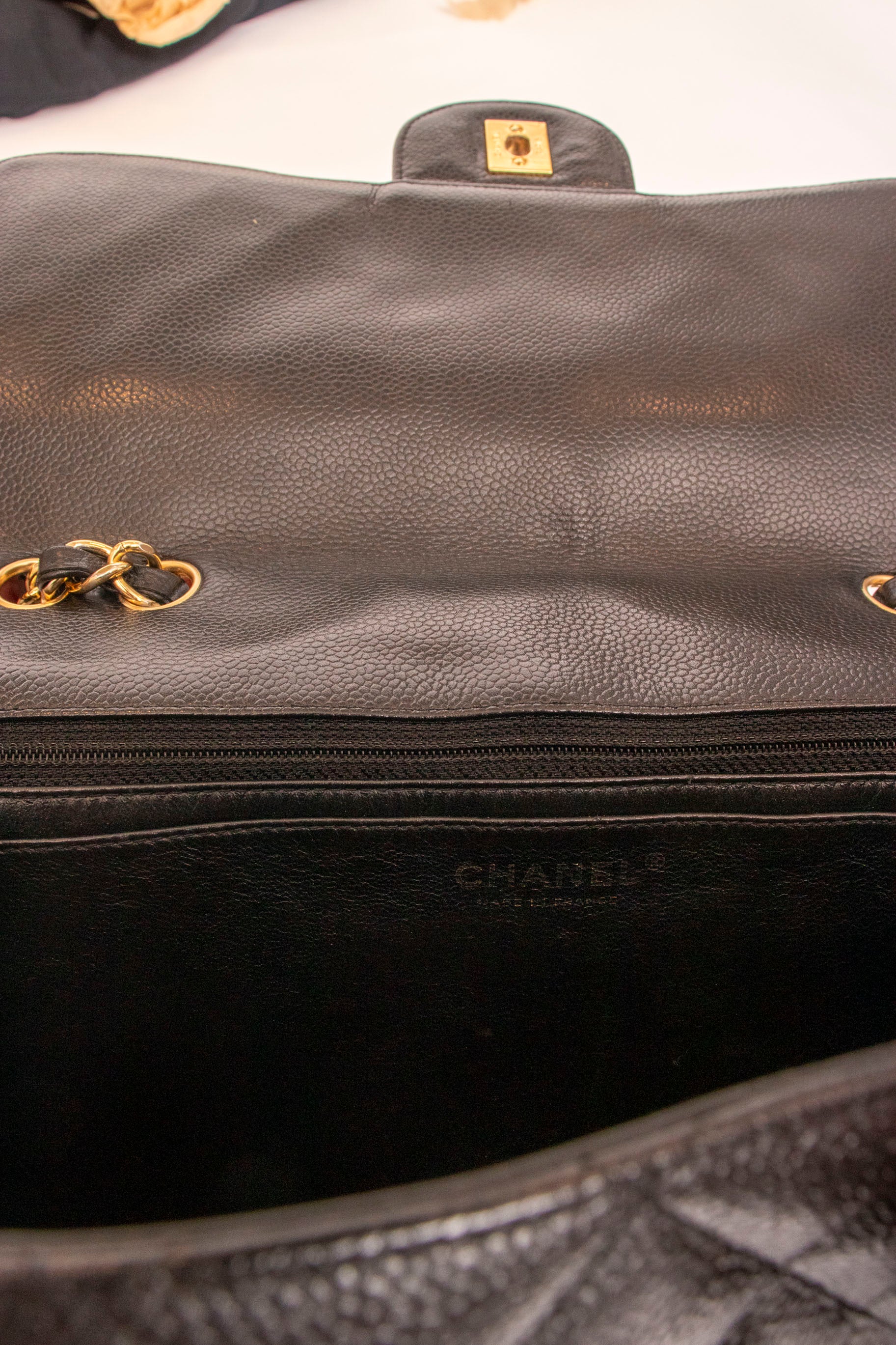 Chanel Black Caviar Jumbo Flap Handbag 2001 Refurbished and like new.