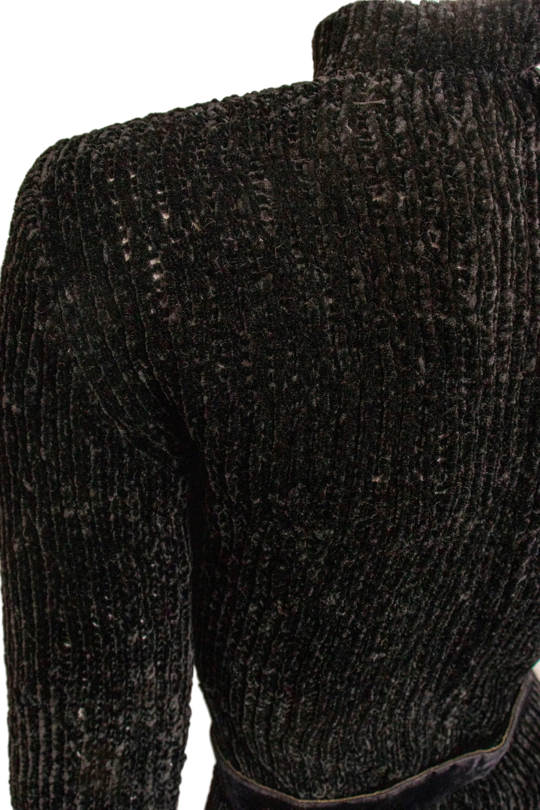 - Fabric: No content tag. Top is soft velvety chenille, skirt is unlined silky fabric