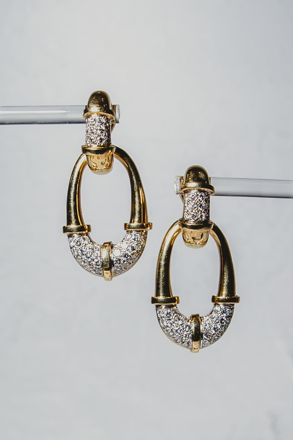 Take your accessory game to the next level with these one-of-a-kind doorknocker earrings! Crafted with 18K gold and dazzling diamonds, these statement earrings are sure to turn heads. Knock, knock, who's there? Fabulous!