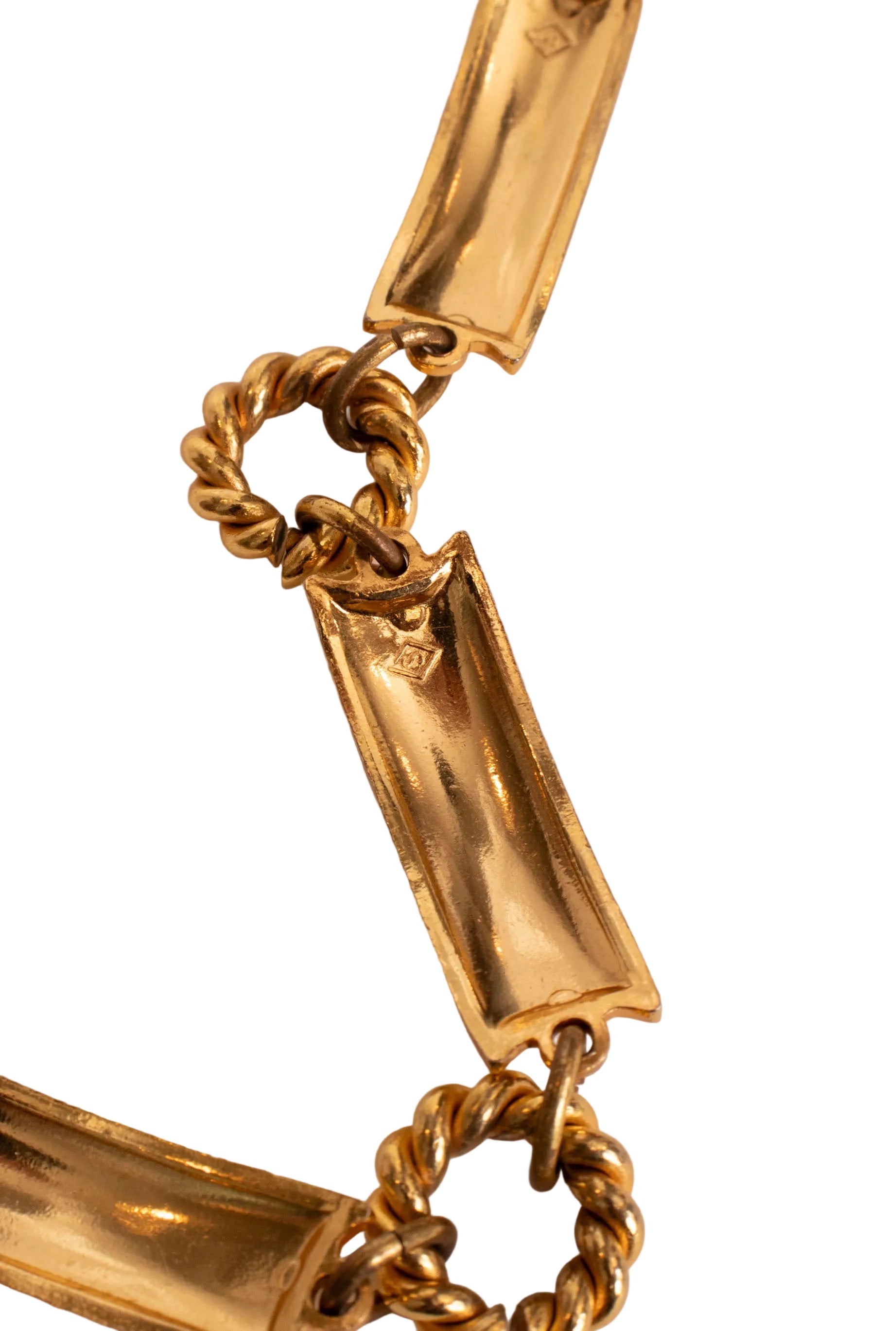 Gucci Gold Tone Blue Ivory Enamel Monogram Chain Belt