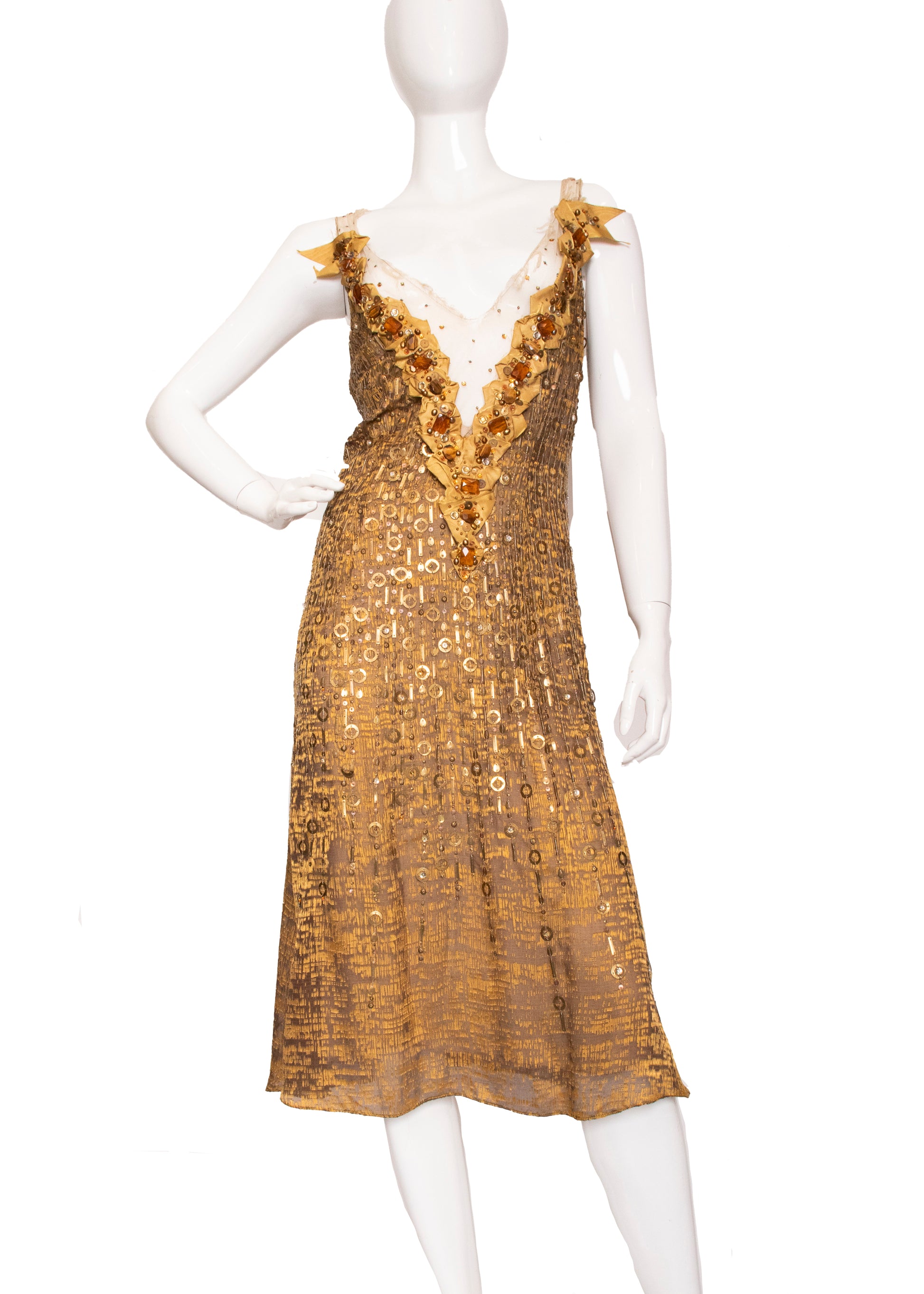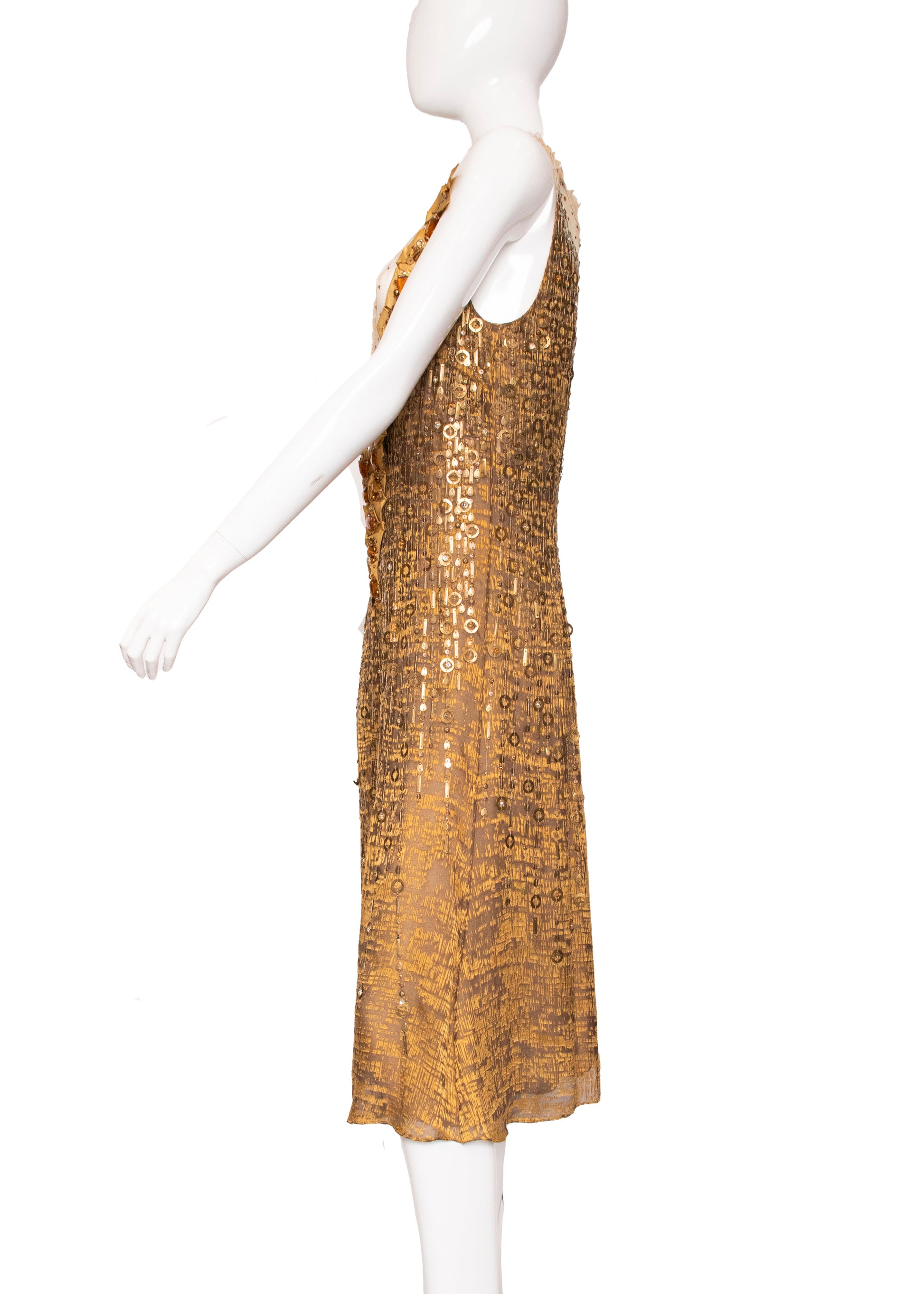 Celebrity Owned Carolina Herrera Gold Embellished Dress 2005 Fall Runway.