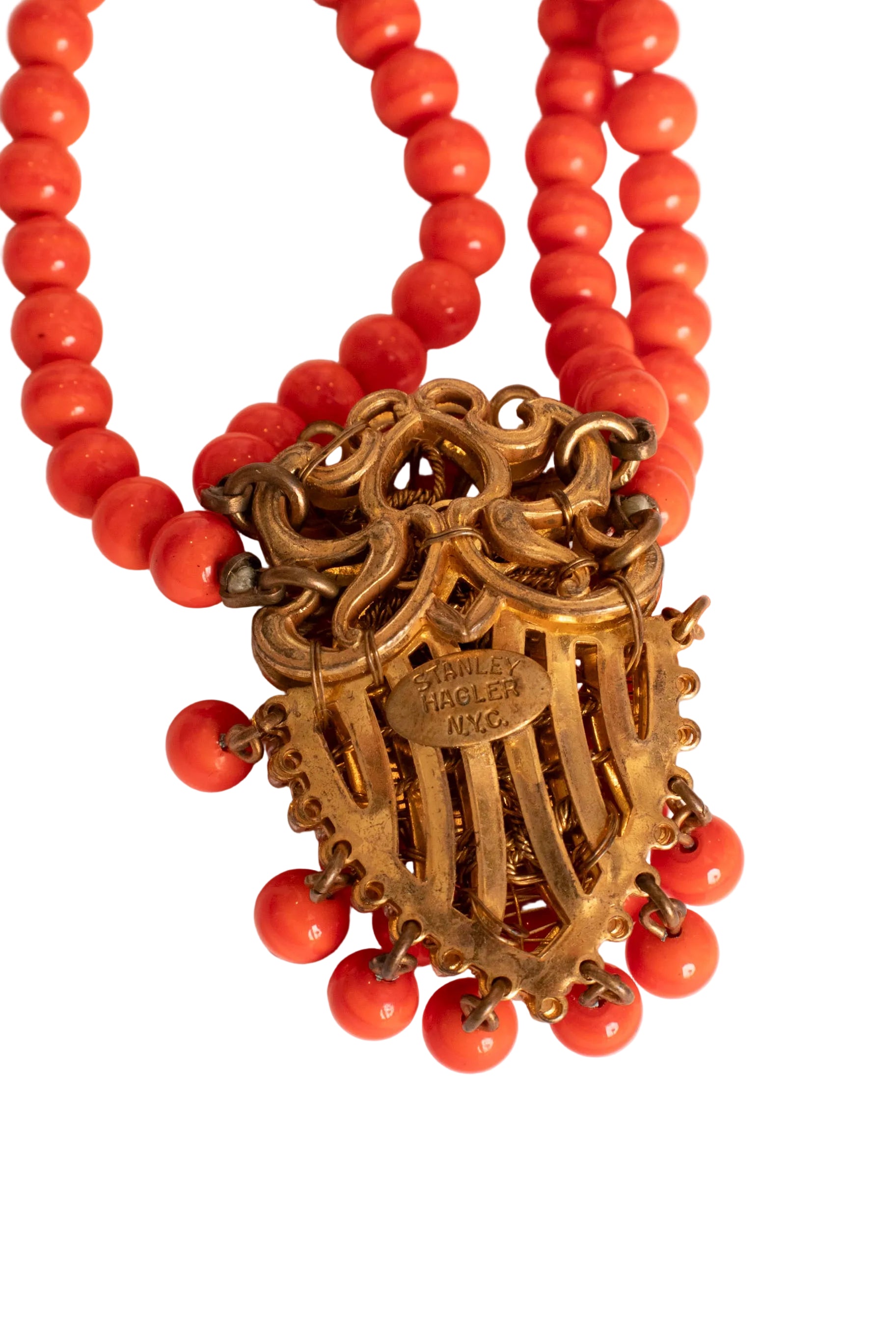 Celebrity Owned Stanley Hagler Coral Colored Necklace & Bracelet.
